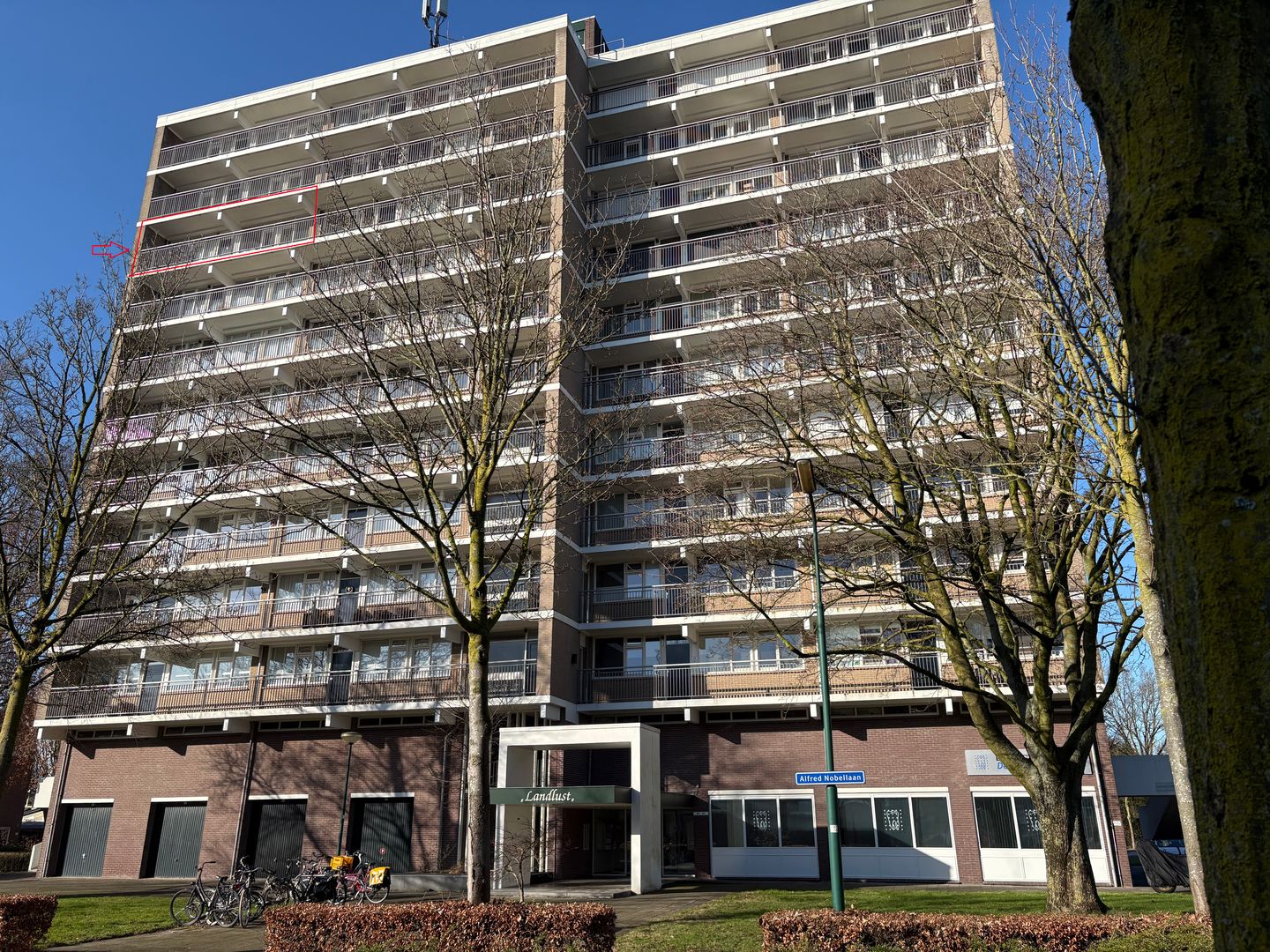 In gebouw “Landlust” modern ruim 4-kamerhoekappartement, gelegen op de 8e verdieping met royaal balkon op het westen met fraai weids uitzicht en inpandige berging. Het appartement heeft een goede indeling met woonkamer, woonkeuken en 2 ruime slaapkamers.
