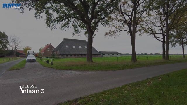 Op een prachtige locatie in het buitengebied net buiten De Blesse bevindt zich deze vrijstaande woning met aangebouwde stenen schuur met o.a. 7 paardenboxen, wasplaats, zadelkamer en inpandige garage, twee vrijstaande stenen schuren en fraai uitzicht over de rondom gelegen landerijen.