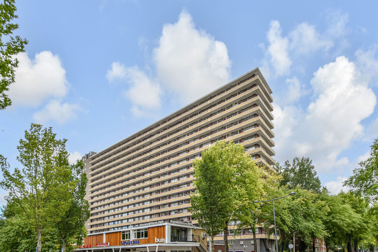 Wonen in een heerlijk licht, zeer goed onderhouden en zo te betrekken appartement met fraai, vrij en weids uitzicht! Dit geweldige 3 kamer-appartement (voorheen 4 kamers), gelegen op de 15e verdieping, beschikt over een super gezellige, ruime en lichte living; moderne keuken met inbouw-apparatuur; moderne sanitaire voorzieningen; 2 ruime slaapkamers en een heerlijk zonnig en ruimtelijk achterbalkon en een (eigen) kelderberging in de onderbouw. Centraal gelegen, nabij centrum van Delft, Technische Universiteit, NS station Delft Centraal en Delft-Zuid, winkelcentrum De Hoven en uitvalswegen (A-13 en A-4). Afgesloten en modern entree met brievenbussen- en bellentableau. Lift naar de 15e verdieping met galerij naar het appartement toe. De indeling is als volgt: Entree woning met hal, gang, meterkast en speels ingedeelde moderne (L-opstelling) keuken, voorzien van prima werk- en bergruimte en diverse apparatuur (combi-oven, vaatwasser, koel/vrieskast, afzuigkap, inductie-kookplaat). Moderne en praktisch ingerichte badkamer met inloopdouche, vaste wastafel + meubel, spiegelkast en opstelplaats wasmachine. Moderne toiletruimte. Ruime voorslaapkamer. Heerlijk lichte, sfeervolle en enorm comfortabele woon/eetkamer met fraai, vrij en weids uitzicht op veel groen en Rotterdam. Ruime achterslaapkamer met vaste kastenwand (schuifsysteem). Heerlijk zonnig (op het zuiden) en ruim opgezet achterbalkon. Van deze woning is een unieke woningwebsite beschikbaar. Download op Funda de brochure voor de link naar de website waar je alle gegevens en meer informatie van deze woning kunt vinden. Bijzonderheden / Kenmerken: - Ideale, zeer leuke en zeer goed onderhouden woning om zo te betrekken. - Gasloze woning. Blokverwarming, voorschot stoken ca. € 100,-- per maand. - Het appartement is geheel voorzien van mooie laminaatvloeren. - Rondom houten kozijnen, grotendeels voorzien van dubbele beglazing. - Actieve VVE met een bijdrage van ca. € 240,- per maand. - Gezien bouwjaar materialen- en ouderdomsclausule van toepassing. - Niet-bewonersclausule zal worden opgenomen. - Prima gratis parkeergelegenheid achter het appartementencomplex. - Eigen kelderberging in onderbouw. - Gelegen op eigen grond. Woonoppervlakte appartement ca. 65 m2. Deze informatie is een uitnodiging tot het doen van een bod/aan onvolkomenheden in de vermelde gegevens kunnen geen rechten worden ontleend/maten zijn indicatief. Oplevering in overleg