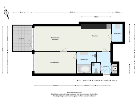 The Measurement Instruction is based on NEN2580. The Measurement Instruction is intended to apply a more unambiguous method of measurement to give an indication of the usable area. The Measurement Instruction does not completely rule out differences in measurement results, for example due to differences in interpretation, rounding off or limitations in performing the measurement.