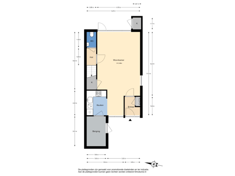 Via de voortuin met de aangebouwde stenen berging bereik je de entree van de woning. De hal met meterkast (9 groepen en aardlekschakelaar) leidt naar de woonkamer met de halfopen keuken aan de voorzijde, uitgerust met een granieten aanrechtblad, gaskookplaat, afzuigkap, combi-oven/magnetron, koelkast en vaatwasser. Vanuit de keuken is er direct toegang tot de aangebouwde stenen berging aan de voorzijde, ideaal voor extra opslag, fietsen en voorraad. De berging is ook vanuit de voortuin bereikbaar.