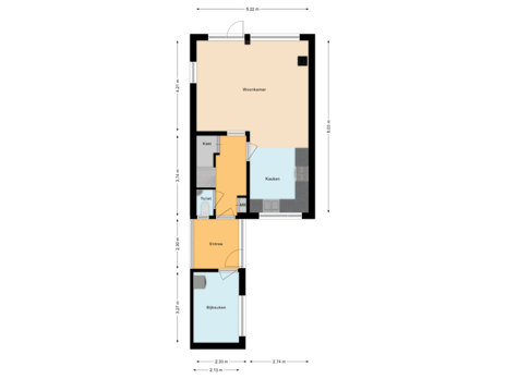 Entree/hal met garderobe, met links een binnendeur naar berging/bijkeuken met opstelplaats voor wasmachine en rechts een binnendeur naar de ruime gang, welke toegang geeft tot het toilet, meterkast, trapkast en de woonkamer.