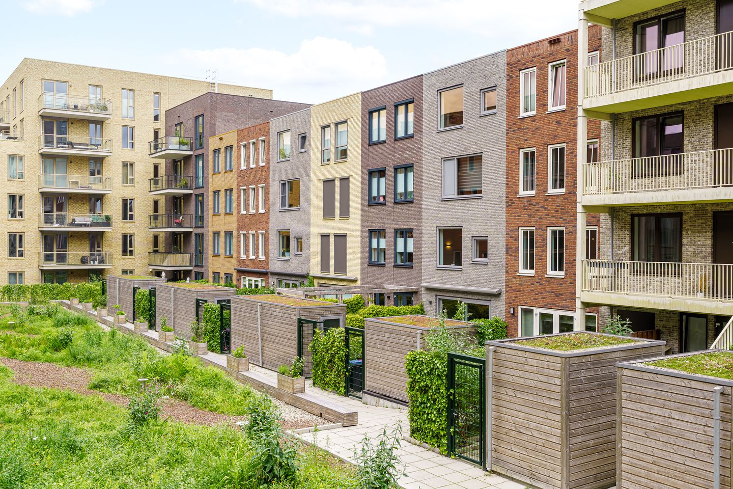 At the front of the house, you can enjoy views of the lively (partly still in development) park, while your car is safely parked in your private underground garage space.