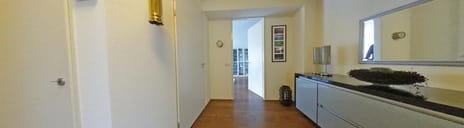 Aangrenzend aan de keuken bevindt zich de bijkeuken, met achterdeur naar de tuin, witgoedaansluitingen en toegang tot de inpandige berging (ca. 8m²). Vanuit de bijkeuken bereik je tevens de ruime slaapkamer (ca. 23m²) op de begane grond met badkamer ensuite. Deze is voorzien van vloerverwarming, een inloopdouche, toilet, wastafel en designradiator. Ideaal voor levensloopbestendig wonen.