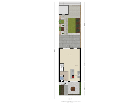 - 75 m² (12.55 metre deep and 5.95 metre wide)