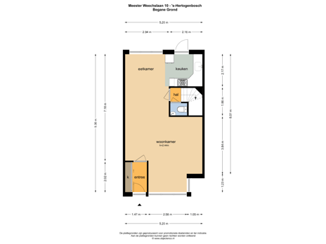Middels de entree aan de voorzijde van de woning komen we in de hal met vaste kastenwand met garderobe en meterkast. Vanuit de hal is er toegang tot de woonkamer.