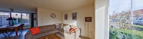 Aan de voorzijde van de woning is het ruime zitgedeelte gesitueerd met erker die zorgt voor een heerlijke lichtinval. De gehele woonkamer is ruim opgezet en biedt voldoende mogelijkheden om alle meubels te kunnen plaatsen.