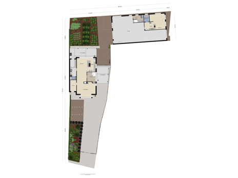 ** Afmetingen van perceel, woning en bijgebouw **