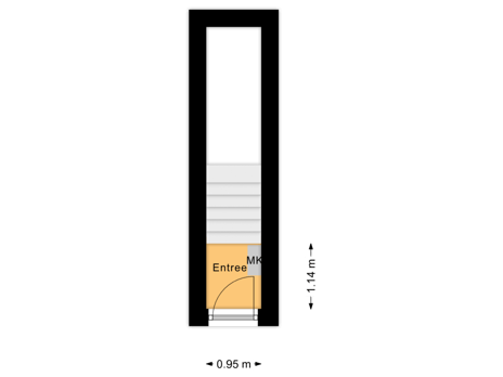 Open porch with stairs to the 1st floor. Entrance to the apartment. Hall with meter cupboard and fixed staircase to the second floor.