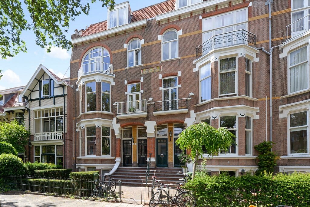 The Frankenslag is one of the widest and most beautiful tree-lined avenues in the Statenkwartier. This well-maintained three-floor apartment features four spacious bedrooms, two bathrooms, and a sunny southwest-facing terrace. The combination of generous proportions, modern finishes, and authentic original details—such as high ornamental ceilings, original suite cupboards, fireplaces, and paneled doors—make this a truly exceptional home in a prime location.