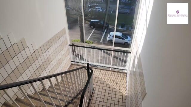 Secure entrance with intercom. Stairs to the basement with the spacious storage room. A gently sloping staircase with landings leads to the second floor, where a landing provides access to the two upper apartments; the door on the right is the front door to this impressive home. You enter a spacious hall with a wardrobe alcove, meter cupboard, and access to all rooms on this pleasant floor. A glass door leads to the impressive living room with a balcony. The standard layout of a standard rectangular room is negated here by the staggered widths and the layout along its width, not its length. Naturally, this also benefits the additional natural light, as well as the large diagonal sightlines for a greater sense of space. Access to the sunny southwest-facing balcony is provided here. At the rear is another balcony, which has now become an extension of the kitchen, enjoying morning and afternoon sun and featuring a balcony cupboard. This balcony is accessed through the large, square kitchen. The layout of the (continuous) countertop and cabinets is practical and well-thought-out. This pleasant kitchen has all the expected built-in appliances and a breakfast counter. The two bedrooms on this floor, as well as the separate toilet, are accessible from the aforementioned hallway. These bedrooms are currently used as a work/study room and a functional (dining) room with a built-in (pantry) cupboard.