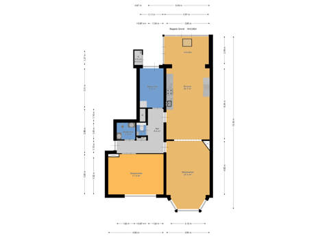 - 106 m² (13.44 metre deep and 7.90 metre wide)