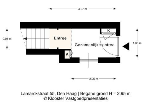 Gemeenschappelijke entree met meterkast op straatniveau.