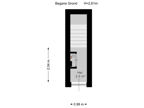 Entree op straatniveau; inpandige trap naar 1e verdieping: gang met garderobekast; toilet met fonteintje;