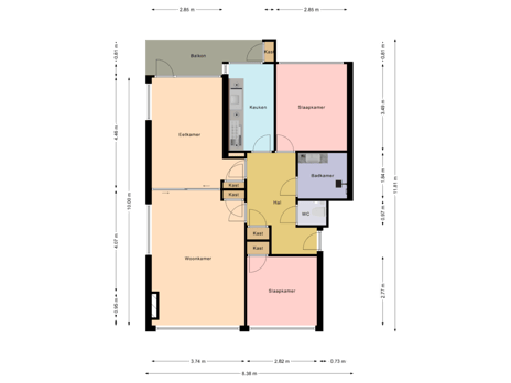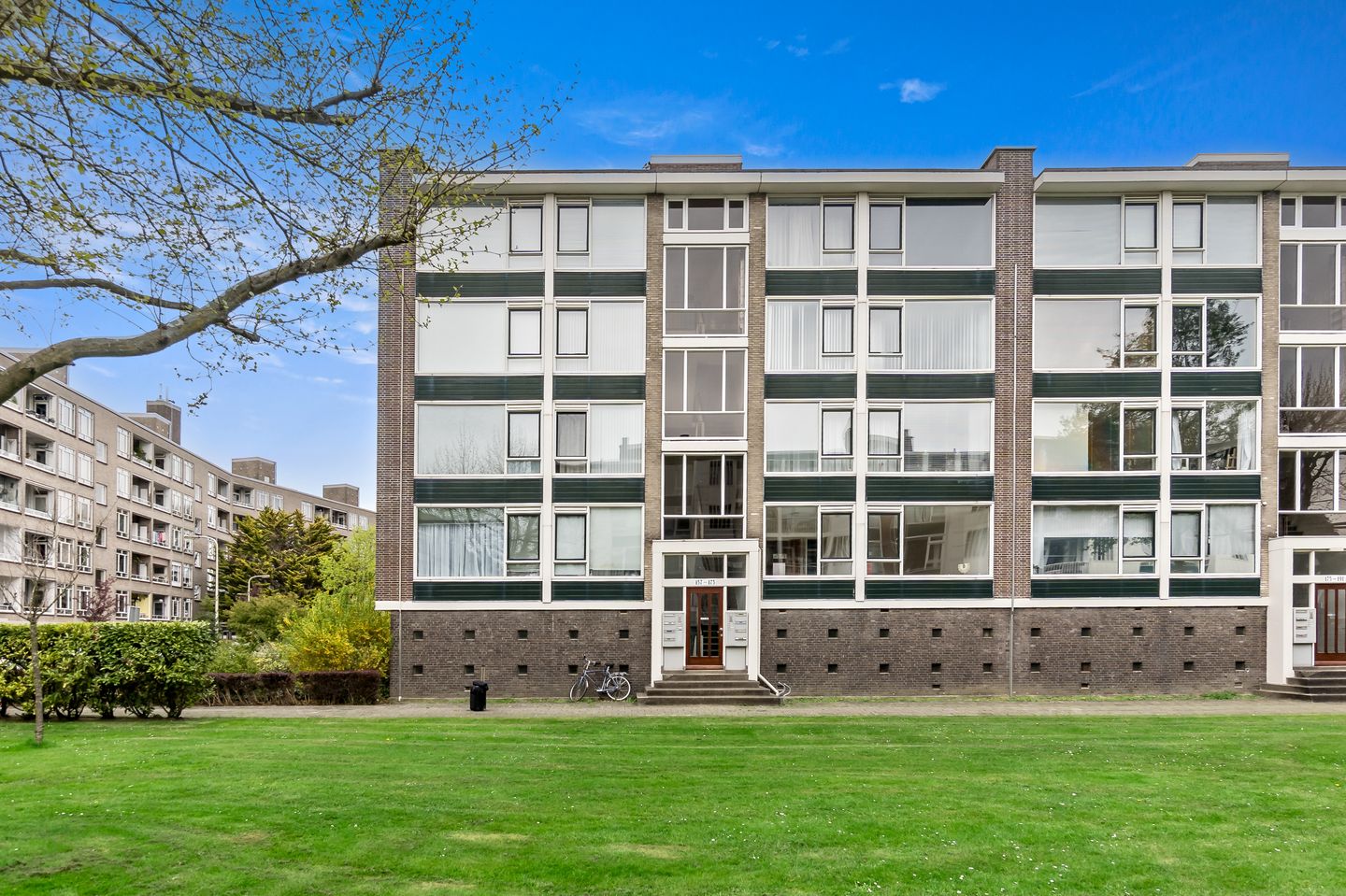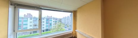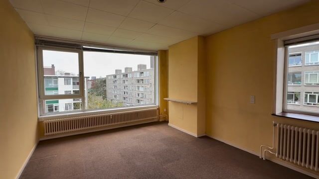 Via enkele treden bereik je de centrale entree. Met de trap of lift kom je op de bovenste woonlaag, waar het appartement is gelegen. Je stapt binnen in een ruime hal met meterkast. De royale en opvallend lichte woon-/eetkamer ensuite is voorzien van een klassieke schuifseparatie. Aan de voorzijde kijk je vrij uit op het groen; aan de achterzijde heb je toegang tot een ruim balkon, compleet met handige balkonkast. De gesloten keuken is eenvoudig en biedt ook toegang tot het balkon (noordoost).
