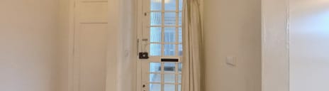 Entrance apartment, central hall with laminated parquet flooring extending into the living/dining room, alcove for the wardrobe with the meter cupboard, and a spacious toilet with a hand basin.