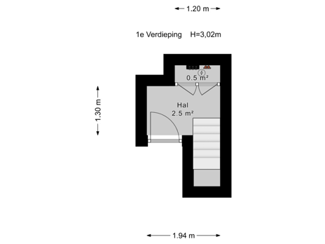The entrance to the building is on the ground floor with the meter cupboard for the house on the first floor and the double upper house. Via the stairs you reach the front door with behind it a hall with wardrobe and the house's own meter cupboard.