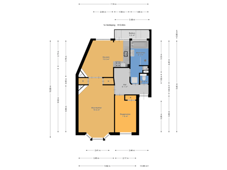 - Living area: 61 m² according to the industry-wide measurement instruction (derived from the NEN 2580 method)