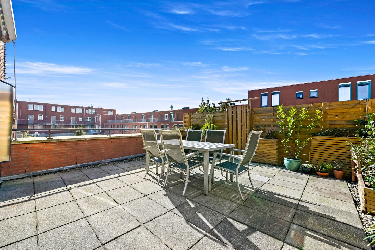 Centrally located and well-maintained terraced house, practically laid out and spread over three residential floors. The property has a favorable energy label and offers a pleasant combination of comfort, space, and outdoor living. At the front of the house there is a front garden and a balcony facing a quiet, car-free street, while at the rear you can enjoy a remarkably spacious and sunny terrace. From this terrace you have direct access to the rear courtyard, from where you can conveniently walk to your own covered private parking space in the underground level. The underground level also contains a separate (bicycle) storage room.