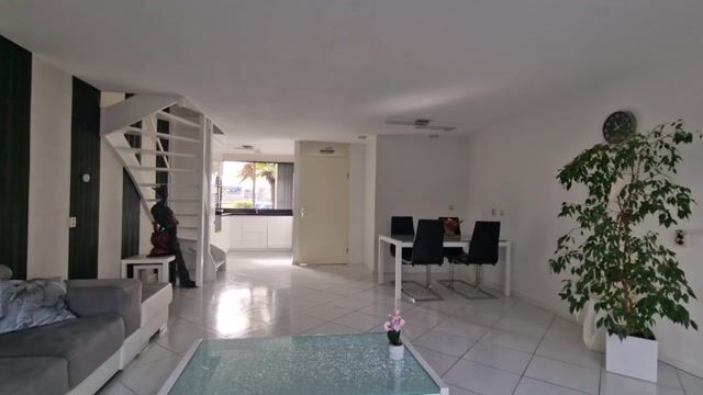 De woon- en eetkamer is tuingericht en prettig ingedeeld, met de trap in de woonkamer. Dankzij de grote raampartijen aan de achterzijde valt er veel daglicht binnen en heb je een fijn zicht op de achtertuin.