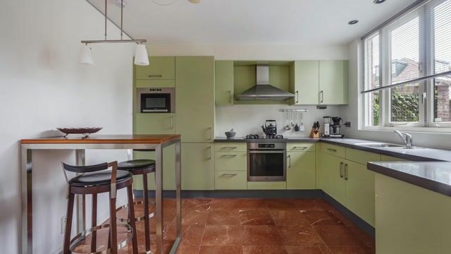 Both rooms feature marble flooring and ample glass, offering a beautiful view of the spacious and sunny south-facing back garden, complete with a detached garage and a wooden shed.