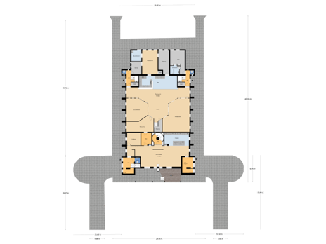 Spacious and atmospheric living room with a wood-burning stove and a luxurious open kitchen. From the living room, you can access the terrace and garden, complete with a pond. The kitchen is generously designed and fully equipped with modern conveniences such as a Quooker CUBE tap and Pitt Cooking. Also on this floor are a large office, a well-sized storage room with direct access to the church hall, two hallways, and a guest toilet. From the main entrance hall, a staircase leads to the large basement with a ceiling height of over three meters.