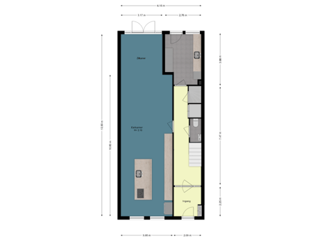 - 65 m² (10.60 metre deep and 6.15 metre wide)