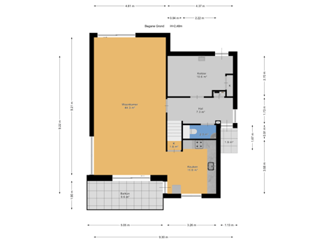 Via de entree komt u in de hal (ca. 7 m²) met meterkast en modern toilet. Vanuit hier is ook de ruime inpandige berging/kelder (ca. 11 m²) bereikbaar, voorzien van uitstortgootsteen en veel bergruimte.