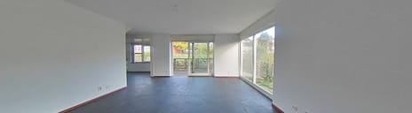 De royale woonkamer (ca. 55 m²) is bijzonder licht door de grote raampartijen en de schuifpui naar het terras. De ruimte is ideaal in te delen als woon- en eetgedeelte en staat in directe verbinding met het terras aan de achterzijde.