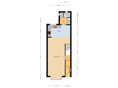 - 16 m² (4.60 metre deep and 4.50 metre wide)