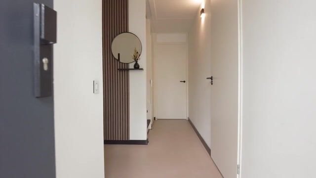 Eerste verdieping: Overloop. De lichte woonkamer is ruim en modern ingericht en loopt vloeiend over in de luxe keuken (2021) met kookeiland, hoogwaardige apparatuur en volop bergruimte. Dankzij de drive-in indeling heeft de woning een verrassende, speelse opzet met een logische verbinding tussen de leefruimtes. Het voorraam is net zo breed als de woning, hierdoor heb je veel lichtinval op elk moment van de dag. De eerste verdieping is voorzien van vloerverwarming en een strakke gietvloer, waardoor het geheel een rustige, stijlvolle uitstraling heeft.