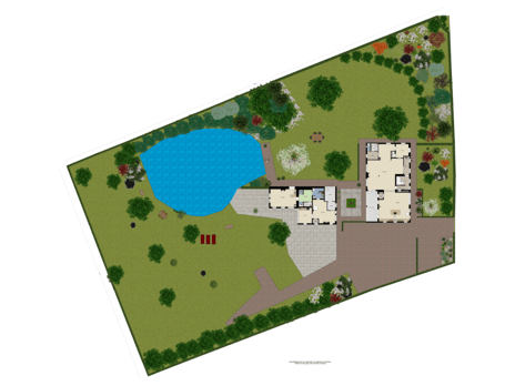 Achter het koetshuis staat een rietgedekt prieel met een doorsnelde van 10 m, verhard met antieke klinkers en een volledig ingerichte BBQ plek. Vanaf het prieel heeft u een prachtig en rustgevend uitzicht op de tuin met de oude fruitbomen en de vijver. De vijver is voorzien van een 50 cm dikke leemlaag, natuurlijke beschoeiing en heeft weelderige begroeiing langs de randen. Het ven beschikt over een eigen zware pomp die als fontein dient en voor beluchting zorgt. Een slim afwateringssysteem voorkomt overstroming.