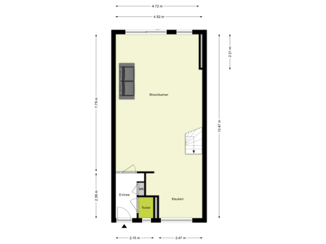 - 56 m² (10.75 metre deep and 5.25 metre wide)
