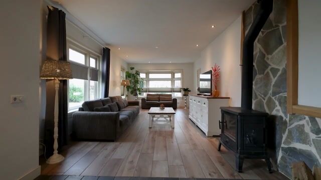 • de vloer op de begane grond heeft keramische (hout-look) en hardstenen vloertegels.