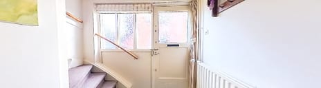 We beginnen in de hal met toilet en trapopgang. Vanuit hier loop je door naar de woonkamer: een lichte en sfeervolle ruimte dankzij de grote ramen die aan beide kanten het daglicht binnenhalen. De open haard maakt het plaatje compleet, ideaal voor gezellige winteravonden. Vanuit de woonkamer gaan we door naar de gesloten keuken. Deze is netjes maar eenvoudig en vooral een mooie kans voor wie graag zijn eigen keuken wil ontwerpen. Denk aan een doorbraak naar de woonkamer of juist een gesloten keuken behouden als knusse ruimte; de mogelijkheden zijn er volop. Ook bevindt zich een voorraadkast in de keuken. De achterdeur brengt je zo de tuin in.