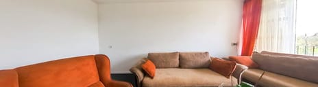 Lichte en sfeervolle woonkamer aan de achterzijde, voorzien van een grote raampartij die zorgt voor veel natuurlijk licht. Vanuit de woonkamer is het balkon bereikbaar, vanwaar een vrij en weids uitzicht over de omgeving wordt genoten.