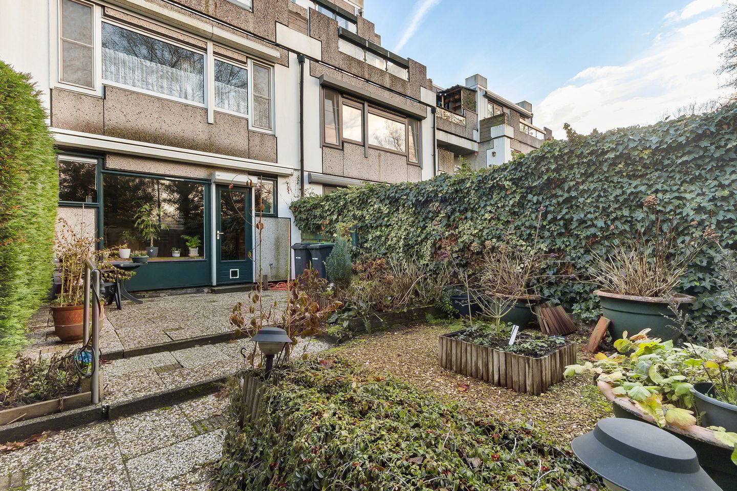 De tuin is bijna 9 meter diep, op het westen gelegen en ingericht met sierbestrating, grind en borders met beplanting. Achterin staat een ruime berging, perfect voor fietsen of klusmateriaal.