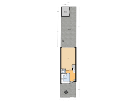 De achtertuin is ca. 12,36 m diep en 4,63 m breed, gelegen op het zuiden en volledig betegeld. Hier vind je een ruime berging (2,27 x 2,85 m) en een achterom. De voortuin is ca. 4,73 x 4,63 m.
