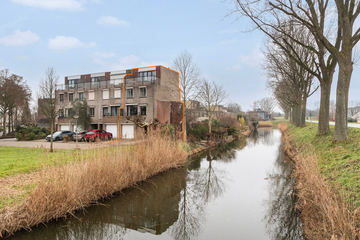 - Comfortabele en royale L-vormige living (ca. 38 m²), aan achterzijde begrensd door de vanaf de begane grond doorlopende glazen pui/vide. Door hoekligging van de woning een fantastisch vrij uitzicht aan zowel de voor- als de achterzijde. In het zijgedeelte zijn voorzieningen aanwezig voor het realiseren van een keuken bij het woongedeelte en is voorzien van een ruime bergkast;