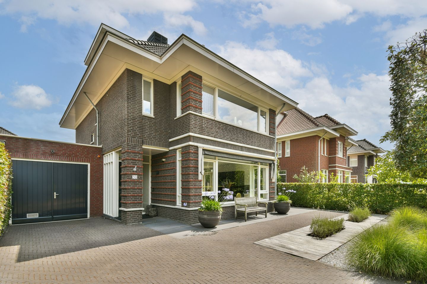 - Voortuin gesitueerd op het westen en is keurig aangelegd met sierbestrating, beplanting en houten vlonders. Er is parkeergelegenheid op eigen terrein voor 1 á 2 auto's.