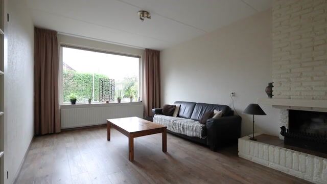 Royale entree/hal met toilet, bergkast, de meterkast en de trapopgang naar de 1e verdieping. Lichte Z-vormige woonkamer met een sfeervolle open haard en een ruim eetkamergedeelte met zicht op de achtertuin. Een nog nette keuken voorzien van een koel-/vriescombinatie, gasfornuis (4 pits), oven, afzuigkap, kunststof werkblad en dubbele RVS-spoelbak. Vanuit de keuken is ook de toegang tot de achtertuin.