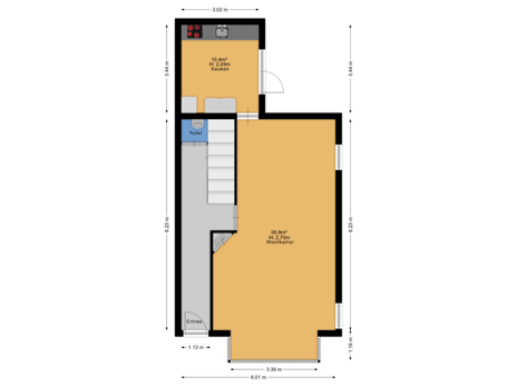 - 40 m² (10.00 metre deep and 4.00 metre wide)