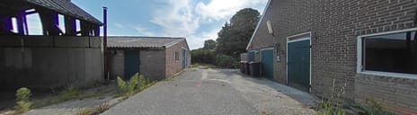 Achter de boerderij staat verder nog een open front werktuigberging en een voormalige veeschuur met werkplaats, beide eenvoudig maar praktisch en voorzien van asbesthoudende golfplaten. Naast de boerderij staan nog een aantal eenvoudige houtstekken met daarvoor diverse erfverhardingen.
