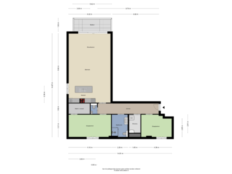 Via de ruime entree bereikt u de verschillende vertrekken van het appartement, waaronder twee royale slaapkamers, waarvan één slaapkamer met inloopkast, een separate toiletruimte, een moderne badkamer en een praktische technische ruimte met aansluitingen voor wasmachine en droger, waar tevens de warmtepomp en WTW-unit zijn opgesteld. De luxe badkamer is ingericht met een dubbele wastafel, een ruime inloopdouche, een tweede toilet en een design radiator.