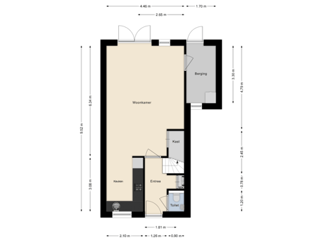 De begane grond heeft een royale lengte van ruim 10 meter, wat standaard al zorgt voor een prettige en open indeling. Aan de voorzijde van de woning bevindt zich de keuken, met volop mogelijkheden voor een moderne keukenopstelling en een gezellige eethoek. Een fijne plek om de dag te beginnen of om samen te koken en te genieten.