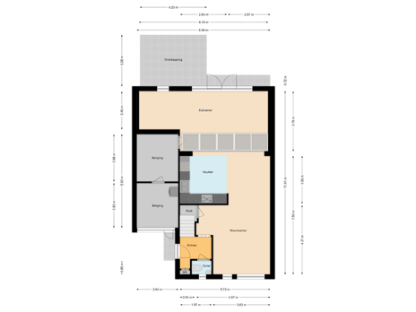 Vanuit de eetkamer is de praktische bijkeuken (8 m²) bereikbaar met mogelijkheid voor het plaatsen van het witgoed. Fietsen vinden hun plaats in de voorliggende berging (7 m²) en verdere opbergmogelijkheden zijn aanwezig in de bovenliggende vliering. Door de tussenwand tussen de bijkeuken en berging te verwijderen, kan de oorspronkelijke garage teruggebracht worden.