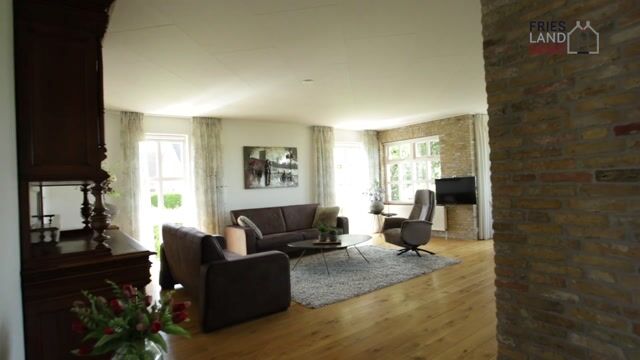 Royale representatieve hal met vide, fraaie trappenpartij met bordestrap, toiletruimte met vloerverwarming, trapkast, ruime slaapkamer met een eigen complete badkamer voorzien van vloerverwarming en uitgerust met een wastafelmeubel, inloopdouche, ligbad en vrijhangend toilet. Ruime living met veel lichtinval voorzien van fraaie raampartijen, ronde half open serre voorzien van een tuindeur naar het terras, spots in het plafond en een pelletkachel. De gehele woonkamer en de hal zijn uitgevoerd met fraaie houten vloerdelen. Vanuit het woongedeelte is een brede doorgang naar de woonkeuken met halfronde op maat gemaakte keukenopstelling inclusief diverse inbouwapparatuur. De woonkeuken is uitgevoerd met plavuizen en voorzien van vloerverwarming. De gehele living en de woonkeuken bieden zicht over de tuin en weids uitzicht richting het Tjeukemeer. Vanuit de woonkeuken is de bijkeuken bereikbaar. De bijkeuken is eveneens voorzien van plavuizen met vloerverwarming en een tuindeur naar de overdekte veranda. Via de bijkeuken is een tussendeur naar de garage voorzien van bovenramen en een elektrisch bedienbare deur.