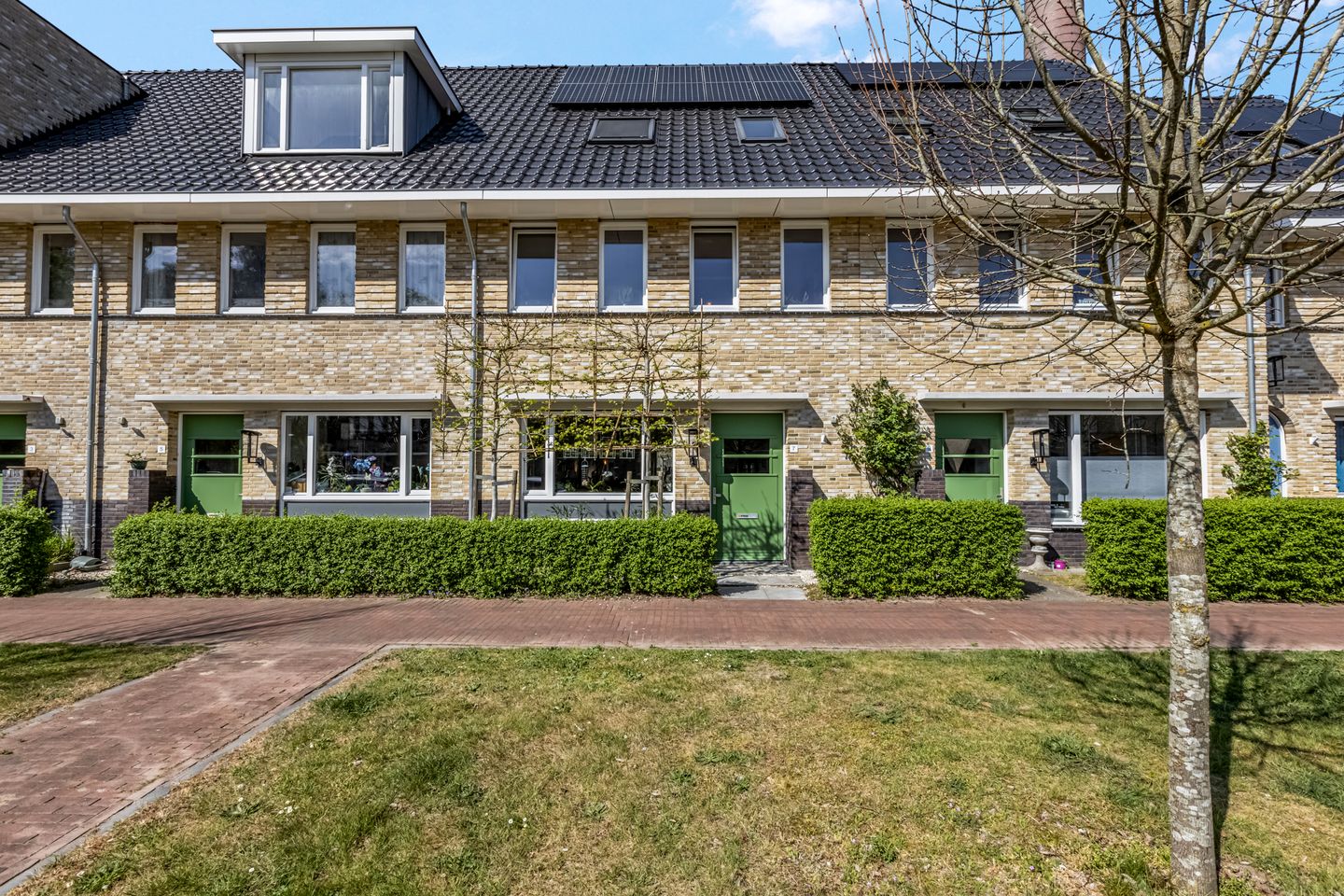 Een van de voordelen van deze woning zijn de ruime slaapkamers, waarvan er drie op de eerste verdieping zijn. Aan de voorzijde is een fraaie slaapkamer over de hele breedte van de woning, die als werkkamer in gebruik is. De master bedroom is, net als de derde slaapkamer, aan de achterzijde. Deze laatstgenoemde kamer is ingericht als kleedkamer en hobbyruimte.