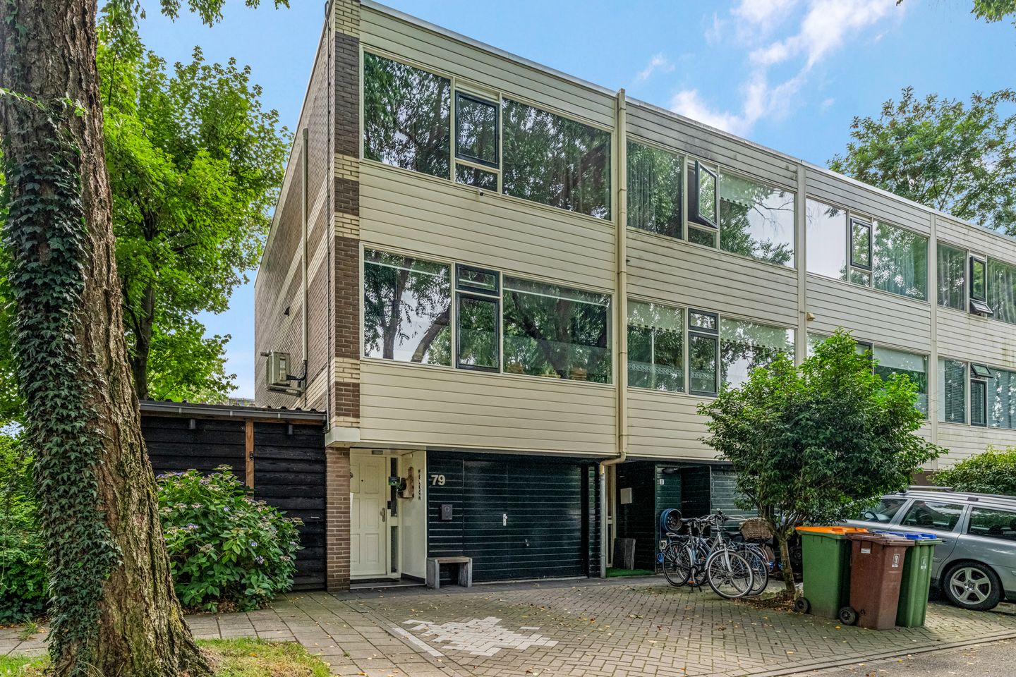 Aan de voorzijde kijk je naar de rustige straat en mooie bomen, terwijl er een plantsoen met water vlak om de hoek is. Er zijn speeltuintjes en scholen in de buurt, en vanwege de extra ruimte op de begane grond zijn er veel ondernemers in de buurt. Via het tunneltje is het een paar minuten fietsen naar winkelcentrum Parkweide, en er zijn goede busverbindingen met het centrum en het station. Met de auto rij je, via de A224, binnen 5 minuten naar de A30. Deze snelweg verbindt de A1 met de A12.