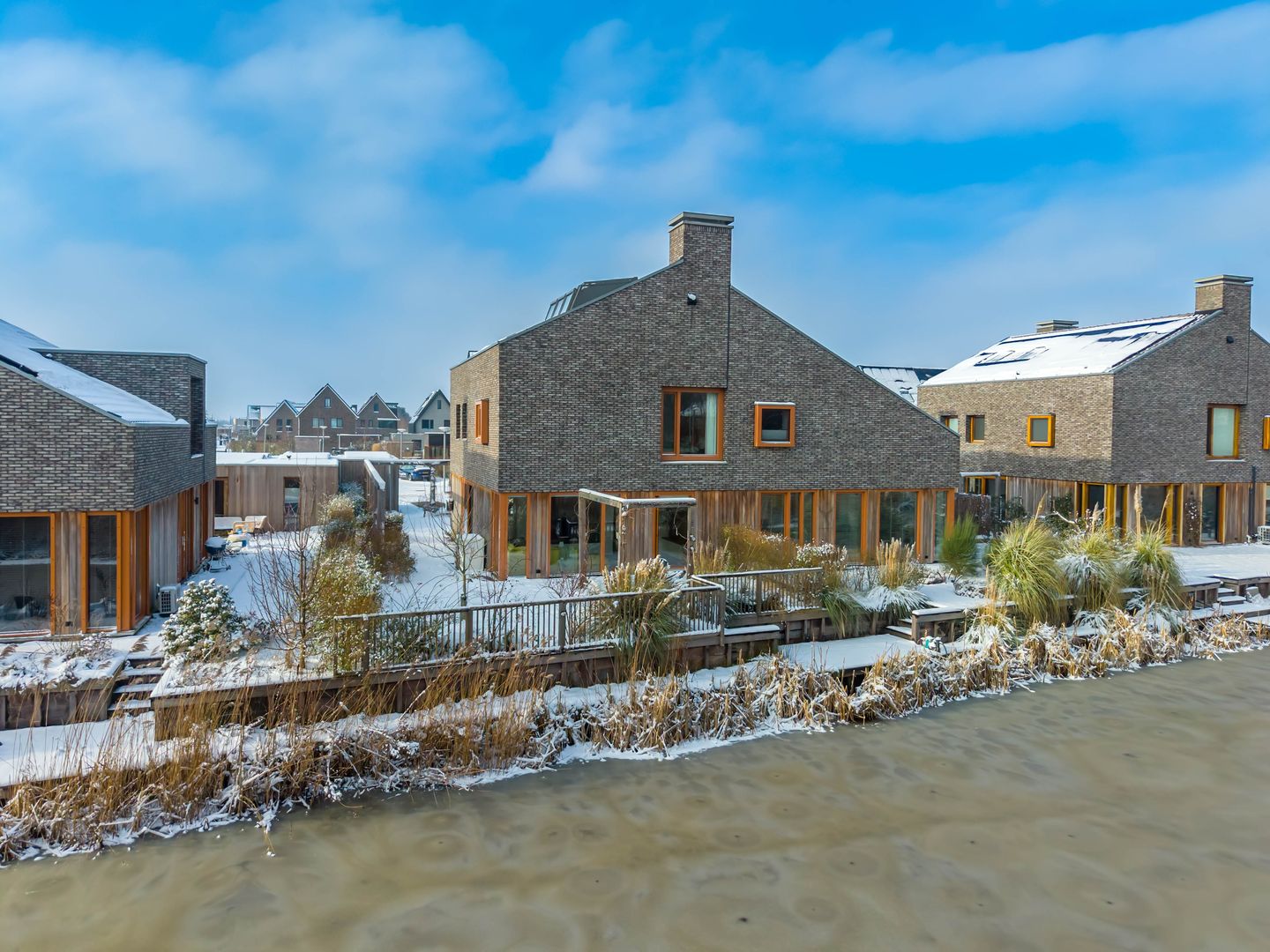 De woning ligt in een jonge, ruim opgezette woonwijk met veel groen en water. Aan de ene zijde grenst de tuin direct aan een waterpartij, aan de andere zijde vind je een zonnige tuin op het zuidwesten met een vrijstaande schuur. Een fijne combinatie van ochtendzon aan het water en middag- en avondzon aan de andere kant. In de tuin is bovendien gedacht aan verlichting en elektrapunten, wat het buitenleven extra comfortabel maakt.
